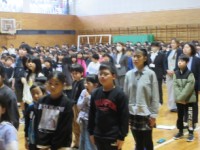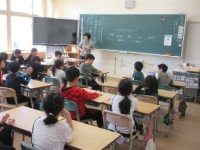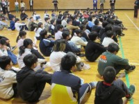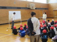 2年生は学年合同の体育をしていました。体育の授業に入る前に、学年の先生方の自己紹...