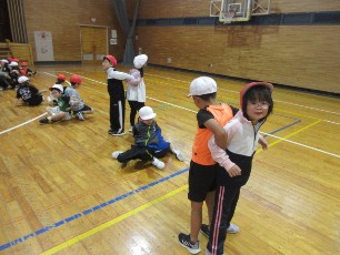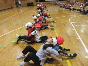 2年生の体育では、2人で力のバランスを保ちながら、取り組む運動に挑戦していました。成功するには、どうしたらよいか、よく考えている姿が素敵でした。