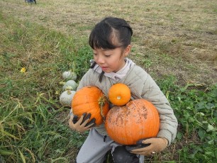 10月13日(月)にPTA親子交流委員会の主催で、かぼちゃ収穫を行いました。島田農園さんでたくさんのかぼちゃを収穫。この収穫したかぼちゃを使って、21日(火)に、ランタンづくりを行います。わくわくする活動で、とても楽しみです。
