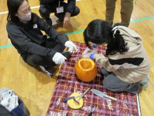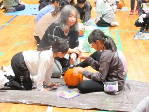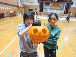 PTA親子交流委員会の活動で、「ジャックオーランタン作成のワークショップ」がありました。たくさんの保護者や子どもたちの参加で、楽しく活動しました。できあがったランタンは、10月25日(土)から「はなふる」で行われる「えにわハッピーハロウィン2025」にて展示するようです。