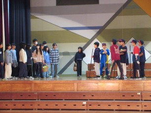 6年生は、劇を発表します。台詞の言い方や振りつけを自分なりに工夫している姿が、さすが6年生と感じました。また、照明や道具の移動、放送関係も自分たちで担当し、まさに自分たちでつくり上げる発表をめざしていました。