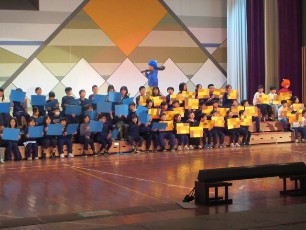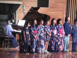 4年生は、学芸発表会に向けて、体育館で練習していました。小道具や衣装も身に付け、いよいよ本番モードです。とても元気な声で、合唱もとても素敵でした。心をひとつにして、発表に向かっていると感じ、頼もしく思いました。