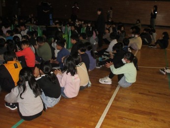 大変素敵な読み聞かせでした。体育館に映し出される大きな映像、バックで流れる静かな音楽、聴いている者を引き付ける読み手。子どもたちは、絵本の世界に入り込んでいました。とても素敵な機会となり、感謝いっぱいです。