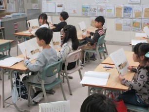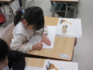 1年国語では、「じどう車くらべ」の学習をしていました。子どもたちにとって、じどう車は身近な乗り物で、興味がある子も多いと思います。その影響もあるのかもしれませんが、とても素敵な表情で学習に取り組んでいました。さらに、姿勢も背筋が伸びて素晴らしく、ノートの書き方も、とても上手でした。音読もしっかり声が出ていて、うっとりしました。