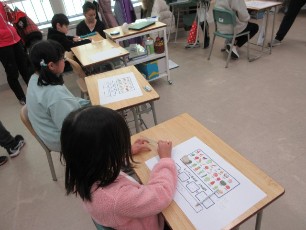 異年齢の子どもたちが、一緒に学び合う姿がとても素敵な授業でした。5・6年生の子どもたちは予算内での買い物ができるように計算し、1年生は、お金の種類について確認しました。買い物ごっこで自分の学んだことが明らかになっていました。