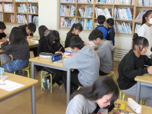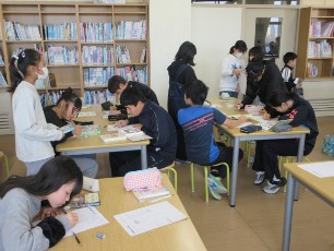 恵庭小は、読書まつりを開催中です。今日の大休みでは、6年生が、おすすめの本の紹介カードを作成していました。読んでみたくなる内容めざして、表現を工夫している6年生。さすがです。