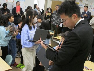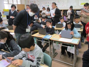 今日は、朝から石狩教育局及び恵庭市教育委員会から指導主事が来校し、全ての学級の授業を参観しました。特に3年3組は特設授業として、算数の授業を公開しました。小数について、整数のときに習った様々な表し方に挑戦する子どもたちの姿が素敵でした。