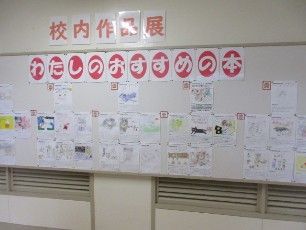 6年生の廊下には、6年生がおすすめする本について、まとめたものが掲示しています。また、児童玄関前には、全学年代表者のおすすめする本についての掲示があります。読んでみると、わくわくしてきます。ぜひ、借りてみたいと思います。