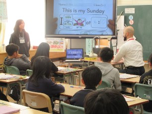 5年生の外国語科では、「私の日曜日」について、英語でみんなの前でスピーチをするテストをしていました。自分の過ごし方を英語で堂々と話す姿にびっくりしました。また、聴いている子どもたちの真剣なまなざしにも感心しました。