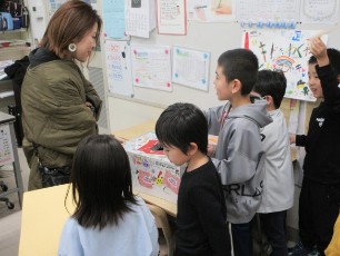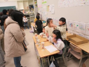 5時間目は1年生の参観日でした。生活科で、秋を感じる材料を使って、ゲームを作りました。今日は、保護者の皆さんがお客さんです。張りきって、店員をつとめる1年生が、とても素敵でした。