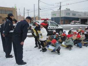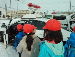 3年生は、学級ごとで恵庭交番に見学に行きました。警察の仕事についてや恵庭市で発生した事件や事故のことを教えてもらいました。また、パトカーにも乗せていただき、回転灯を回したり、サイレンを鳴らしたりする体験もさせてもらいました。教科書だけではわからない、貴重な体験をさせてもらいました。