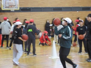 6年生の体育は、バスケットボールです。ドリブルやパス、シュートの練習やグループに分かれて、ミニゲームをしました。今日は参観日で、その様子をたくさんの保護者の皆様にもご覧いただきました。6年生はバスケット少年団に入っている子も多いため、友だちにこつを教える姿を何度も見かけました。互いに高め合う姿が素敵でした。