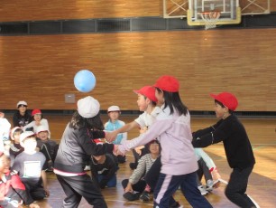 3年生の体育は、運動量が多く、子どもたちは元気いっぱいに動いていました。まずは短縄です。リズムよく跳び、中には二重跳びに成功した子もいました。次に風船を使ってのグループでのゲーム。風船が床につかないように、子どもたちは素早く動いていました。楽しそうに運動に取り組む姿が素晴らしかったです。