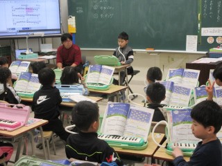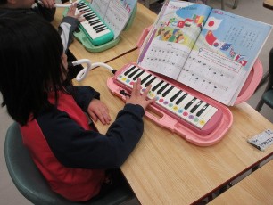 1年生は、鍵盤ハーモニカの練習をしていました。指使いや吹き方にも気をつけながら、楽しそうに取り組んでいました。友だちの発表を集中して聴いている姿もとても素敵でした。