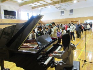 1年生代表の元気な挨拶で始まった全校朝会。5年生の校歌の伴奏に合わせて、元気な声で合唱する子どもたち。冬休み明けを感じさせない、気持ちが引き締まる書記局の進行。そして、真剣に話をきく全校の子どもたち。冬休みが明けて、いよいよ後期後半がスタートしました。元気な子どもたちの様子を見て、うれしくなりました。