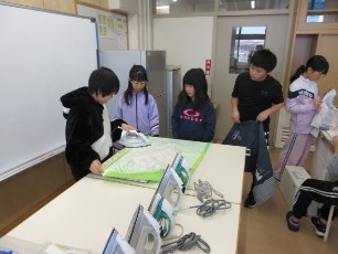 5年生は、ミシンを使って、エプロンを作成していました。アイロンでしっかり布を織り、慎重にミシンを使っていました。ミシンにトラブルがあっても、慌てずに対処していました。
