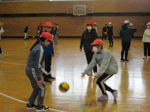 6年生の体育に、恵庭中学校と恵明中学校の体育専門の先生がゲストティーチャーとして来校して下さいました。ボールを使った楽しい運動を教えてもらい、6年生も楽しそうでした。少しずつ中学校の学習や雰囲気に慣れていきます。
