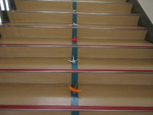 恵庭小の廊下や手すりに、折り紙の鶴が置かれています。これは生活委員会が廊下歩行や階段の歩き方について、改善することを目標に取り組んでいます。今日の長休みに様子を見ていると、ちょっとつぶれてしまった鶴を、生活委員と一緒に低学年の児童が折りなおしていました。何とも素敵な光景でした。