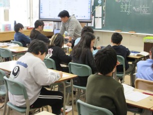 5年生の算数は、いよいよ1年間のまとめに入りました。担任外も全員出動し、少人数に分かれて、丁寧に指導に当たっています。真剣な表情で立ち向かう子どもたちの姿が素晴らしいです。5年生の学習をしっかり理解した上で、最高学年に進級してほしいです。