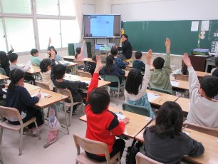 1年生の国語は、1年間の総まとめをしていました。読点の打ち方やかたかな等、今まで習ったことを思い出していました。改めて、大きな成長を自覚したと思います。