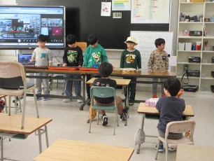 つくしんぼ学級では、互いの進級、そして6年生の卒業をお祝いする会がありました。ゲームや音楽の発表、クイズ等、子どもたちの発想を生かした内容で楽しみました。最後には1年生から6年生に手作りのプレゼントを渡しました。また、先生方も変装して出場した6年生への応援も素敵でした。会全体に日常の関わりの素晴らしさが表れており、とても素敵な時間となりました。