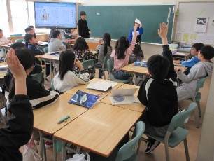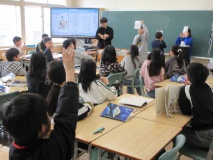 5年生の国語では、言葉について学習を深めています。クラス編成替えがあった5年生。子どもたちのつながりを大切にするために、ちょっとゲーム的な要素も組み入れ、楽しく学習をしていました。