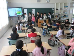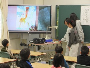 入学から1週間が過ぎました。今日も朝から元気な挨拶をしてくれます。とても素敵な1年生です。さて、6年生が1年生のお世話に先週から取り組んでくれています。上手に教えながら、自分でできることは見守っている6年生。素晴らしいです。今日は読み聞かせもしてくれました。絵本の世界に入りこむ1年生。なごやかな雰囲気です。