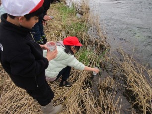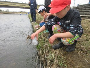4年生の総合的な学習では、漁川の様子について学習します。その中でもサケについてもこれから調べていきます。今日は、今まで稚魚を学校の水槽で育ててきましたが、それを川に放流しました。元気にたくさん戻ってくることを願って放流していました。