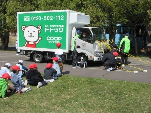 2年生が、交通公園に出かけ、安全教室に参加してきました。交通安全協会やコープの方のご協力で、自転車の点検方法や安全確認の必要性について、さまざまな実験を通して教えて下さいました。やや風が強い中でしたが、しっかりと命を守る訓練に参加してきました。