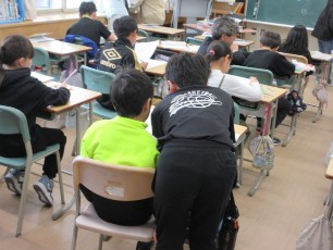 5年生の算数では、直方体と立方体の体積を求めていました。分解や合成が必要な難しい立体についても、面積の学習を思い出しながら、挑戦していました。困ったときに互いに助け合う姿が素晴らしかったです。