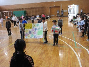 1年生の入学をお祝いする会である「1年生を迎える会」がありました。2・3年生とつくしんぼ学級は、1年生へのプレゼントと歓迎の言葉、そして4年生は楽しいクイズ、5年生は学校の行事を寸劇で紹介してくれました。1年生はとても楽しそうに参加し、そして、校歌や感謝の言葉も発表してくれました。初めての全校児童が集まる会が、とても充実したものになりました。