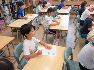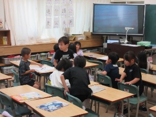 2年生の生活科では、図書館へ行く計画を立てていました。どんな質問をするか、どんなところを見たいか、自分の考えを発表しながら友達と協力して学習していました。