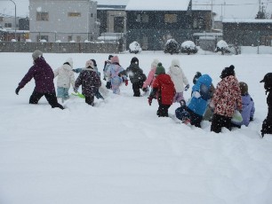 1年生の生活科で、冬を楽しむためにグラウンドに出て、たくさん遊びました。雪合戦を...