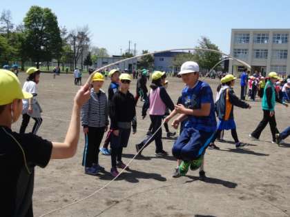 6年生は、よさこい踊りのあと、なわとびパフォーマンスを披露します。すてきな演技のために、休み時間を使って練習に励んでいます。
