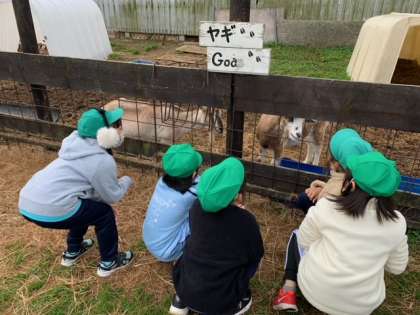 何度も延期になった3年の社会見学です。2クラスずつ、むらかみ牧場と消防署を見学します。3,4組はむらかみ牧場からスタートです。牛舎の見学や、どうぶつ広場でかわいい動物とふれあいました。