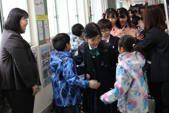 式の終盤、よびかけの場面では、これまでの思い出や感謝の気持ちがあふれ、涙する子どもたちも姿も見られました。その思いは在校生にも伝わり、6年生の最後の晴れ姿を涙ながらに見送る姿が印象的でした。