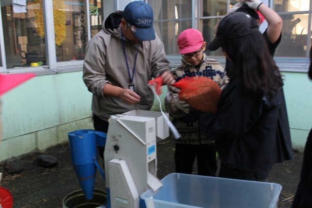5年生が、先日収穫して脱穀したお米を精米しました。