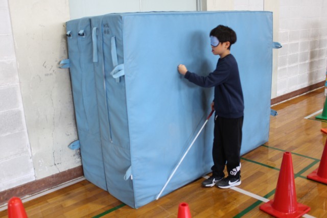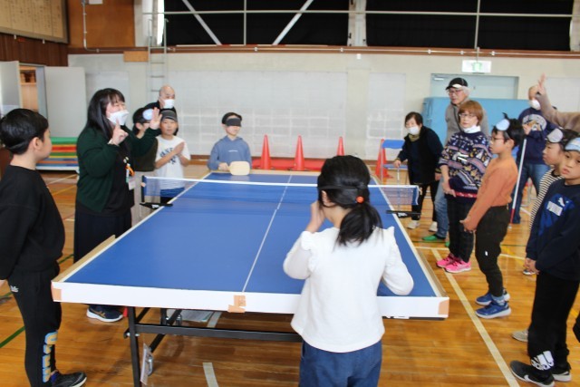 実際に白杖を持ち、目隠しをして障害物を避けながら歩く体験や、サウンドテーブルテニスの体験に取り組みました。