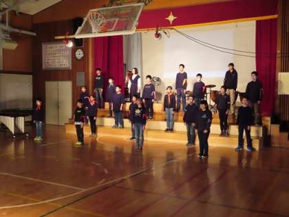 いよいよ6年生の発表です。旧担任も指揮に加わり感動的な発表でした。