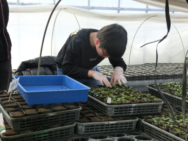 今回は、元気に育ってきた芽を、ひとり一人がポットに植え替える作業です。