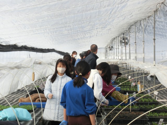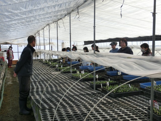ビニールハウスの中に入ると、とても暖かくて驚きました。外との温度差は30度近くあるそうです。