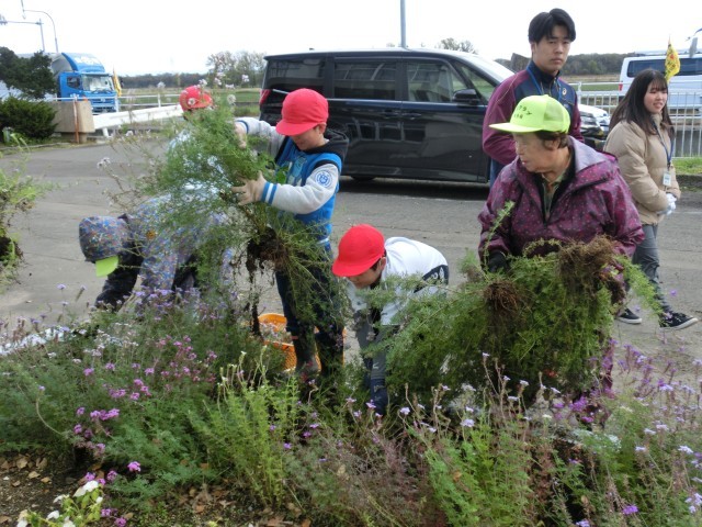 本日、フラワーロード集会で、花壇や道路を飾った花の片づけを行いました。