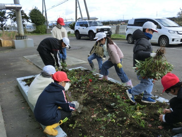 春から秋にかけて、子どもたちが大切にお世話をしてきた花々も、季節の移り変わりとともに役目を終えました。