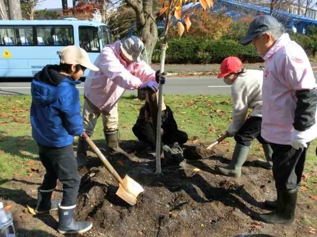 本日、5年生が市の桜の植樹事業に参加しました。