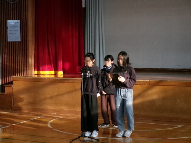 最後に私からは後期後半の大切さについて話しました。次の学年に向けて、残り2か月という短い期間をどのように過ごすかが大切であることや、これから特に頑張ってほしいこととして3つ伝えました。