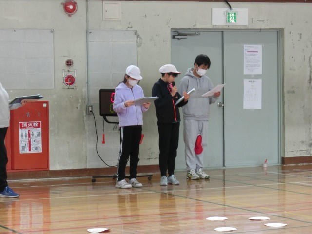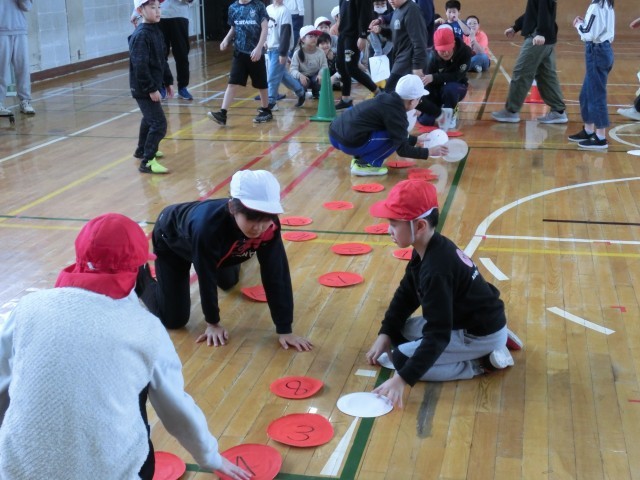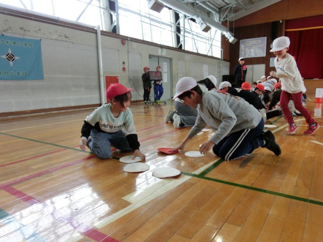 縦割り班で盛り上がる 赤白紙めくりゲーム