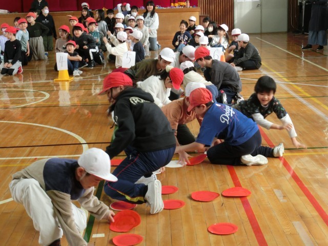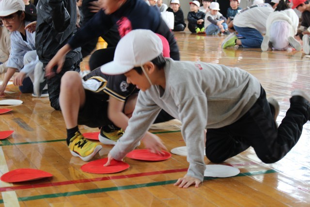 競技が始まると、子どもっ地は夢中になって紙皿をめくり続け、どの班も一生懸命に取り組む姿が見られました。