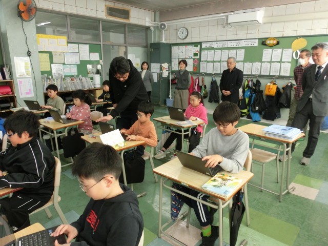 委員の皆様からは、子どもたちの落ち着いた学習の様子や、ICT機器を使った授業の様子、主体的に取り組む姿について温かい言葉をいただきました。