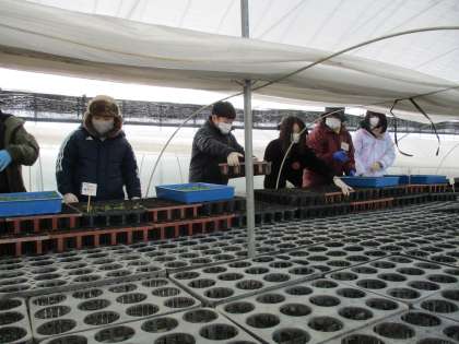 3cmくらいに育った苗を、一回り大きなポットに植え替える作業も行いました。