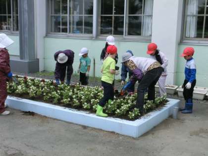 6月4日(火)「フラワーロード集会」が行われました。学校前の花壇、道路の向かい側の場所にベコニア、ペチュニア、マリーゴールドなどの花を植えました。東恵庭環境保全会、東恵庭松恵クラブ、PTAの方々と一緒に植えました。子どもたちは、今日から10月までの花の世話を通して、生き物を大切にする心、美しいものに感動する心が育つと思います。また、地域や保護者の方々とのふれあいを通して、豊かな心が育っていくのではと思います。東恵庭環境保全会、東恵庭松恵クラブ、参加されたPTAの皆様、誠にありがとうございました。